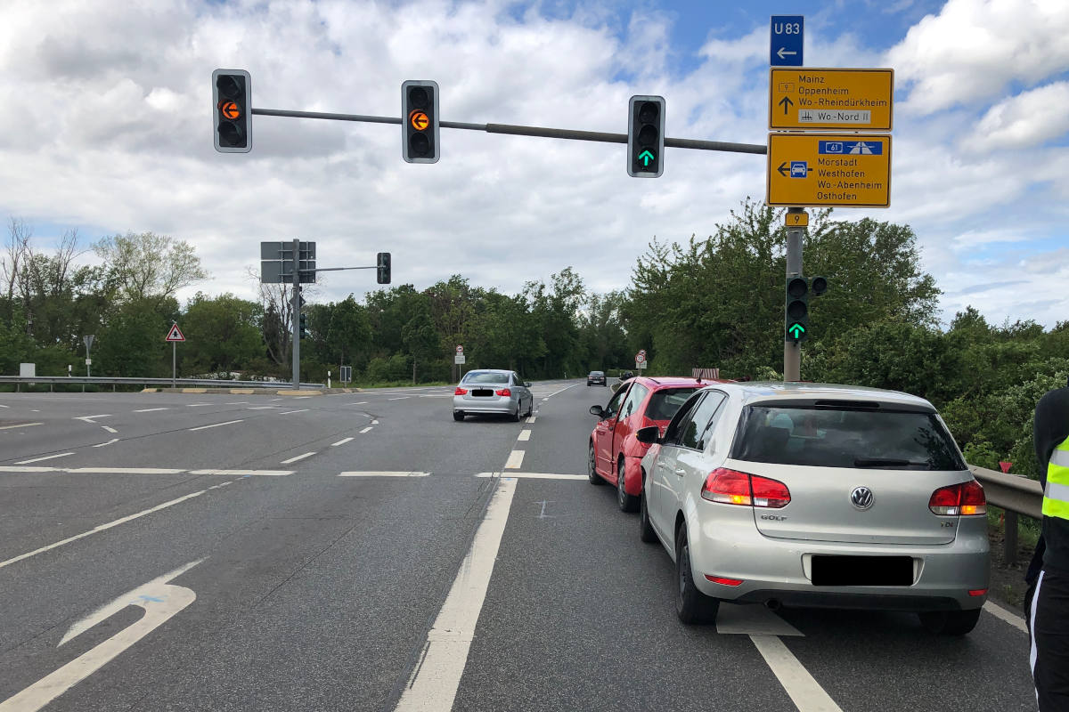 Am Samstag, dem 22.05.2021, gegen 15:55 Uhr, befuhren zwei 19-jährige Fahrzeugführer die B9 aus Richtung Worms kommend in Fahrtrichtung Osthofen.
