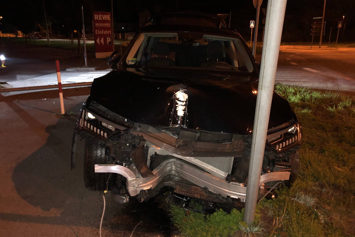 Der 47-jährige Wormser befuhr mit seinem Audi die Von-Steuben-Straße aus Richtung B9 kommend. Am Kreisverkehr Von-Steuben-Straße / Gaustraße wollte der PKW-Fahrer weiterhin die Von-Steuben-Straße in Richtung Innenstadt befahren. Aufgrund seiner hohen Geschwindigkeit verliert der Fahrer die Kontrolle über seinen PKW, kollidiert zunächst mit einer Straßenlaterne, welche abbricht, und kommt anschließend vor einem Verkehrszeichen zum Stehen.