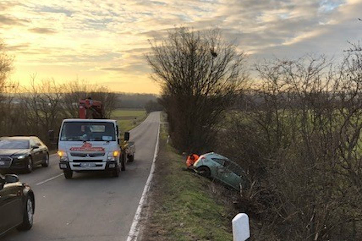 Ohne fremde Beteiligung landete gestern ein 25-Jähriger mit seinem PKW neben der Kreisstraße 18 im Graben.