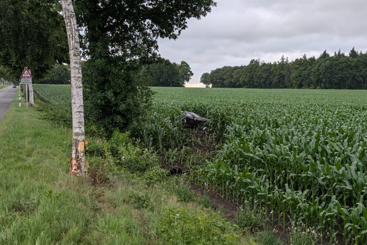 Der Pkw überschlug sich und kam in einem angrenzenden Maisfeld zum Stehen.