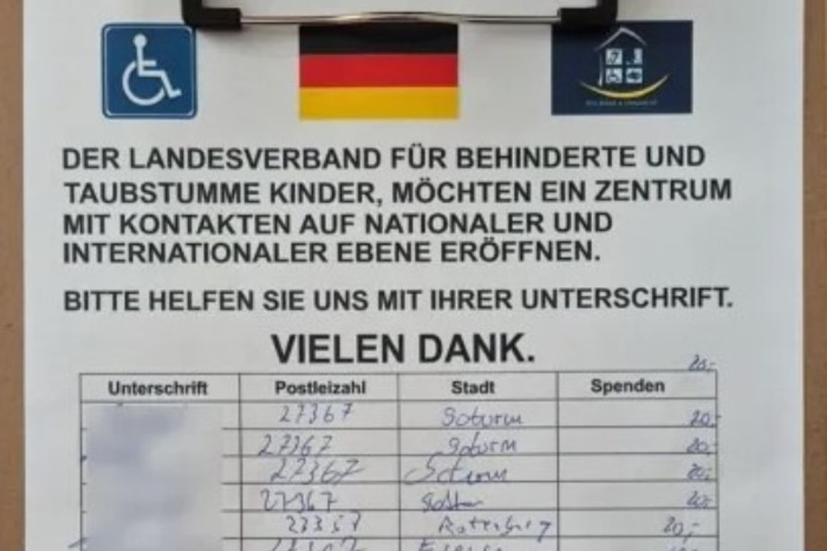 Bereits mehrfach warnte die Polizeiinspektion Rotenburg in den vergangenen Monaten vor einer bekannten Betrugsmasche, bei der angebliche Spendensammler – meist vor oder in Supermärkten – Geld für den angeblichen "Landesverband für behinderte und taubstumme Kinder" erbitten.