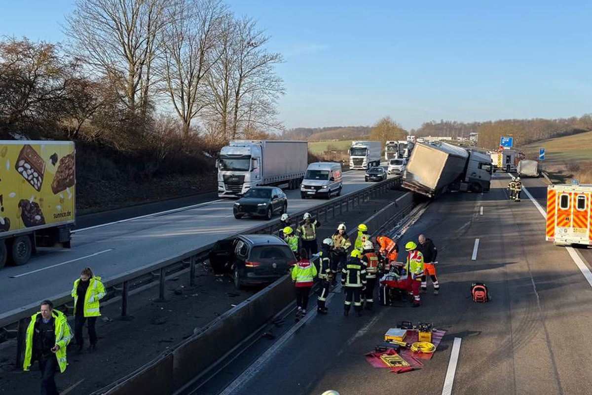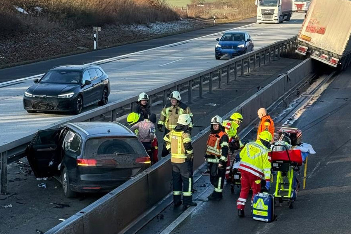 Nach zwei Verkehrsunfällen auf der A44 bei Zierenberg sind am Donnerstag, 22.01.2026, insgesamt vier Menschen verletzt worden. Ein geplatzter Reifen an einem Lkw sowie ein Auffahrunfall durch Gaffer führten zu Vollsperrungen in beide Richtungen.