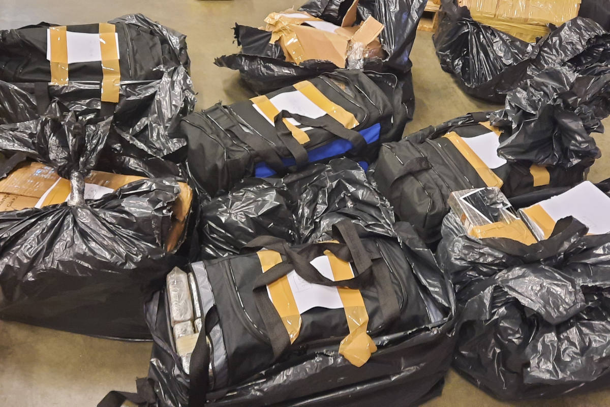 Am 01.07.2021 stellten Mitarbeiter einer Firma im Rheinkreis Neuss beim Entladen eines Über-seecontainers verdächtige Mülltüten mit Sporttaschen in der Warenlieferung fest und meldete dies sogleich der örtlichen Polizeiwache. Da es sich jedoch um eine zollamtliche Einfuhr handel-te, wurde das zuständige Hauptzollamt Krefeld eingeschaltet. Umgehend machten sich die dorti-gen Beamten der Kontrolleinheit Verkehrswege Kaldenkirchen auf den Weg und stellten 13 Sporttaschen mit Kokain in Blöcken sicher. Das Zollfahndungsamt Essen, Dienstsitz Aachen, übernahm die Ermittlungen.