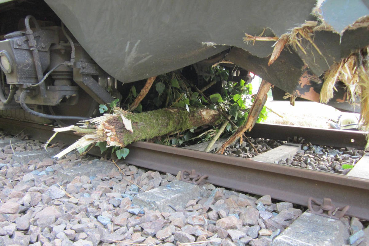 Am 08. August 2019 gegen 17.00 Uhr fuhr eine Regionalbahn auf der Bahnstrecke zwischen Kaiserslautern und Lauterecken-Grumbach kurz vor der Ortschaft Otterbach in einen, auf den Gleisen liegenden Baumstamm.
