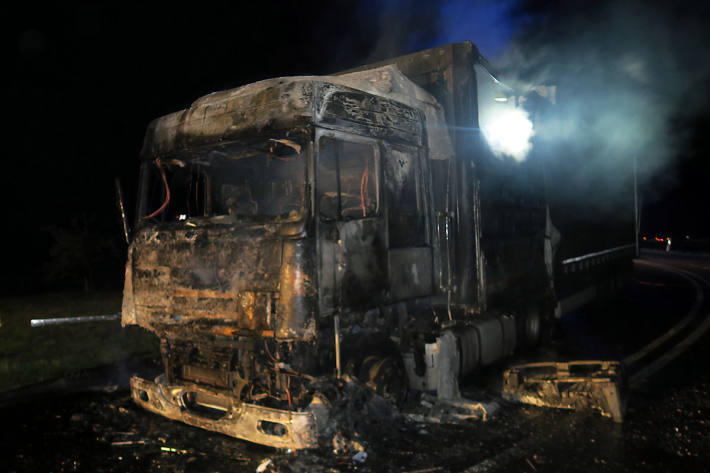 Bad Nauheim - LKW brannte komplett aus Ein LKW-Fahrer bemerkte am Mittwoch (09.09.) gegen 20.40 Uhr plötzlich Qualm an der Vorderachse seines Sattelzuges. 10.09.2020 | 12:15