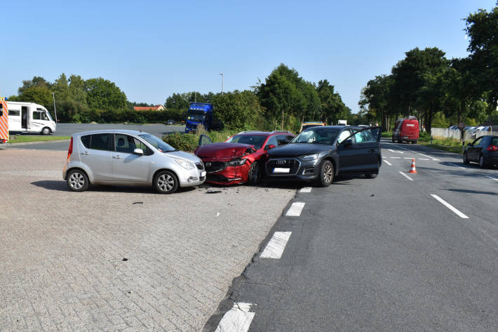 Oldenburg NI – Zwei Verletzte nach Unfall mit drei Pkw Am Mittwochnachmittag (13.08.2025) kam es auf der Leerer Straße in Oldenburg zu einem Verkehrsunfall mit drei beteiligten Fahrzeugen. Zwei Personen wurden... 13.08.2025 | 18:26