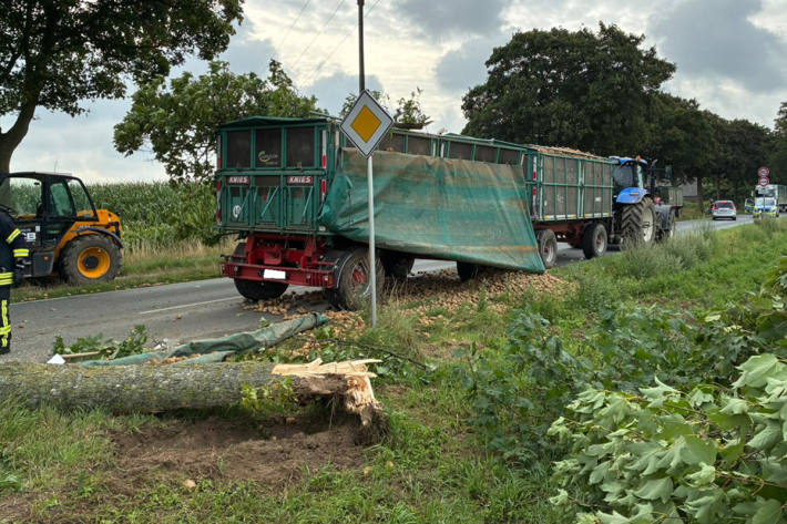 Bedburg-Hau NW – Traktorgespann prallt gegen Baum Am Montagvormittag, 4. August 2025, ist in Bedburg-Hau ein Traktorgespann mit einem Baum kollidiert. Der Baum stürzte um, der Anhänger wurde beschädigt und... 04.08.2025 | 12:12
