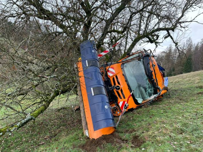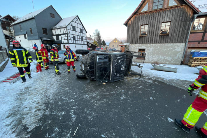 Masserberg – Schneepflug überschlägt sich Der Baum verhinderte ein weiteres Abrutschen. Die Bergung konnte aufgrund der Witterung erst am Folgetag durchgeführt werden. Der Fahrer des Pfluges wurde... 27.11.2022 | 18:18