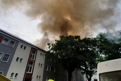 Wohnung nach Feuer im Dachgeschoss unbewohnbar. Eine Person nach Erstversorgung an der Einsatzstelle zu weiteren Untersuchungen in ein Krankenhaus transportiert.