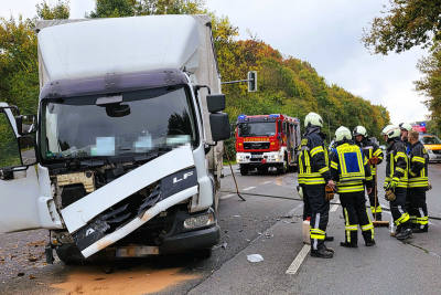 Am Freitagmittag, 17.10.2025, kam es in Sprockhövel (NW) zu einem Unfall zwischen einem Lkw und einem E-Fahrzeug. Der Pkw wurde in eine Böschung geschleudert, eine Person kam ins Krankenhaus. Ein Rotl...