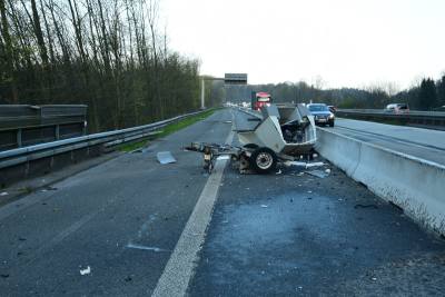 Ein bislang Unbekannter hat in der Nacht zu Montag (11.04.) auf der A 4 in Höhe der Anschlussstelle Untereschbach mit einem bislang unbekannten Mittel einen Geschwindigkeitsanhänger gesprengt, der dor...