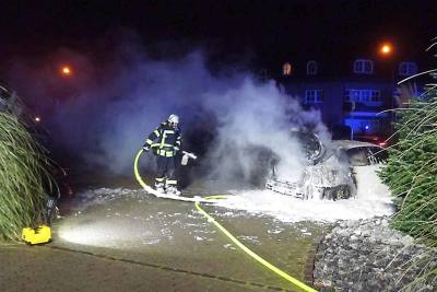 Die Feuerwehr Sonsbeck löschte einen brennenden PKW auf der Balberger Straße. Personen kamen nicht zu Schaden.