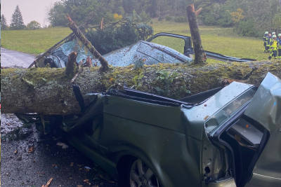 Am Samstag (04.10.2025) zog ein schweres Sturmtief über Südbaden. Zahlreiche Straßen mussten gesperrt werden, zwei Menschen wurden schwer verletzt, als ein Baum auf ein Fahrzeug stürzte.