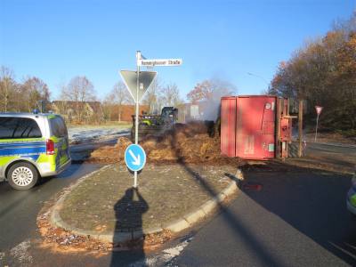 Freitagmittag (16.12.2022) befuhr der 21-jährige Fahrer eines Traktors mit angehängtem Muldenkipper die Remmighauser Straße (B 239) in Richtung Detmold.