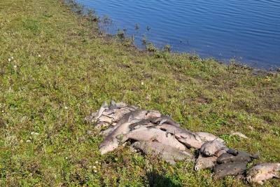 Gestern hat die Löschgruppe Lüttingen geholfen mehrere tote Fische aus einem Gewässer zu bergen.