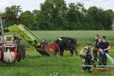 Die Feuerwehr wurde um 17.23 Uhr zu einem Bauernhof in Liedern gerufen.