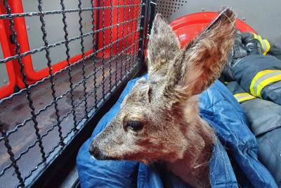 Ein Rettungswagen kollidierte während des Einsatzes mit einem Reh.