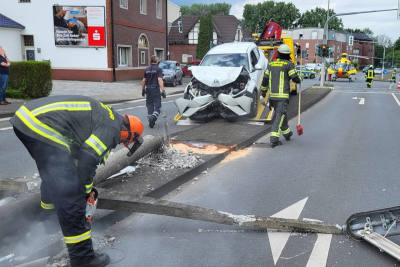 Verkehrsunfall auf Varnhöveler Straße: Feuerwehr rettet verletzten Fahrer aus beschädigtem Auto im Graben.