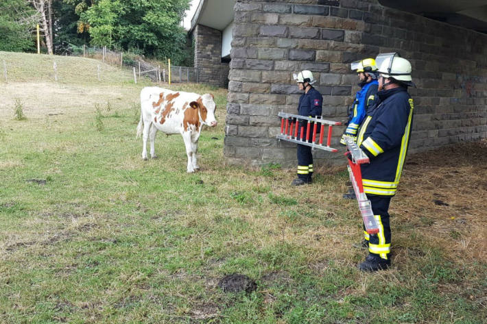 Rind aus misslicher Lage befreit - Kopf steckte in Maschine fest Heute Morgen um 09.50 Uhr musste die Feuerwehr Hünxe ausrücken, da scheinbar ein sehr neugieriges Rind seinen Kopf in eine Maschine gesteckt hatte. 21.07.2019 | 19:57