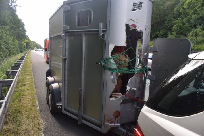 Pferd zerstört eigenen Anhänger während voller Fahrt Auf der BAB7 bei Derneburg kam es am Samtag, zu einem Zwiscxhenfall mit einem Pferd in einem Anhänger. Das Tier wurde dabei schwer verletzt und musste danach... 09.06.2019 | 09:35