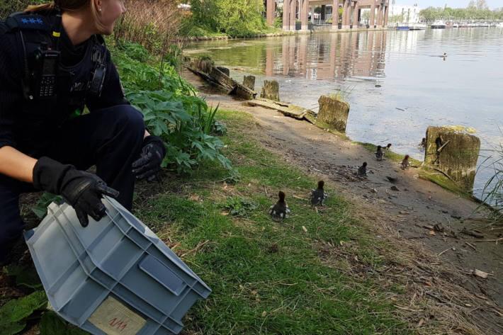 Entenfamilie zusammengeführt Das gab ein Geschnatter! Gleich sieben Entenküken wurden von der Polizei in Lübeck am Freitag (26.04.2019) um 12.10 Uhr mitten aus dem gefahrenträchtigen... 27.04.2019 | 11:42