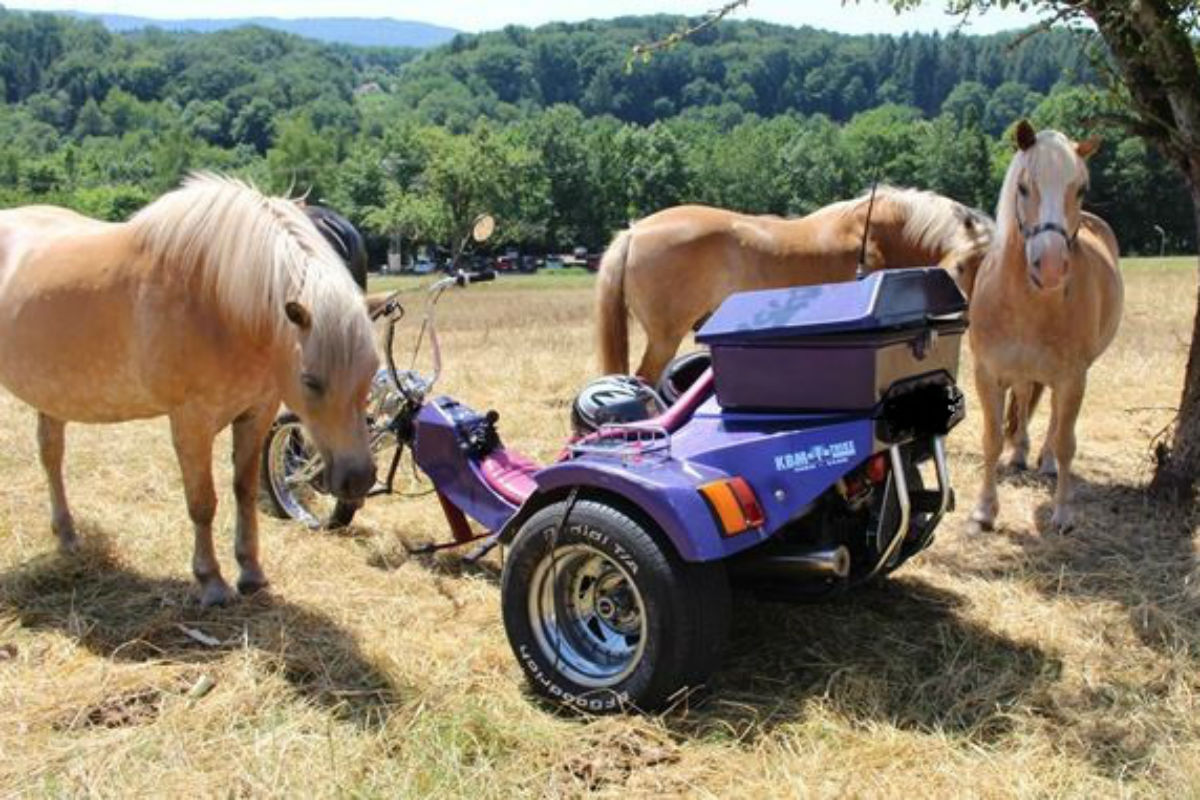 Die Pferde auf der Koppel blieben unverletzt und waren, wie das Bild zeigt, an dem verunfallten Trike stark interessiert.