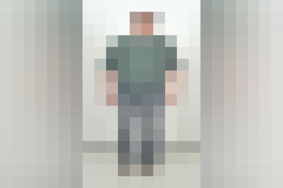 Zudem hat er einen leichten Bauchansatz, braune Haare, die er meistens mit einem Scheitel nach rechts trägt sowie braune Augen.