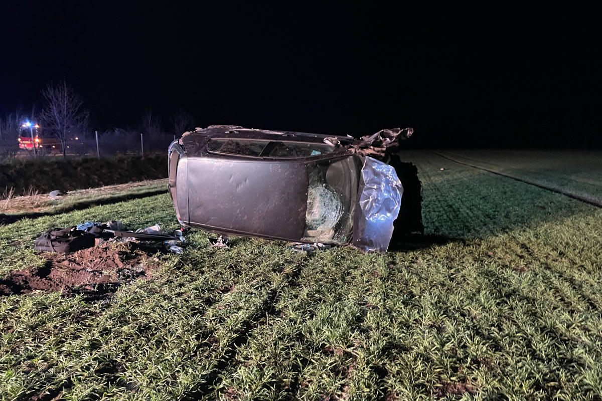 Auf der Autobahn 1 Hamburg Richtung Bremen, zwischen den Anschlussstellen Heidenau und Sittensen kam es am späten Freitagabend zu einem schweren Verkehrsunfall. Ein VW Golf war aus ungeklärter Ursache mit einem VW Touran kollidiert. Dabei überschlug sich der Golf, durchbrach den Wildschutzzaun und blieb auf dem Dach, auf einem angrenzenden Acker liegen.