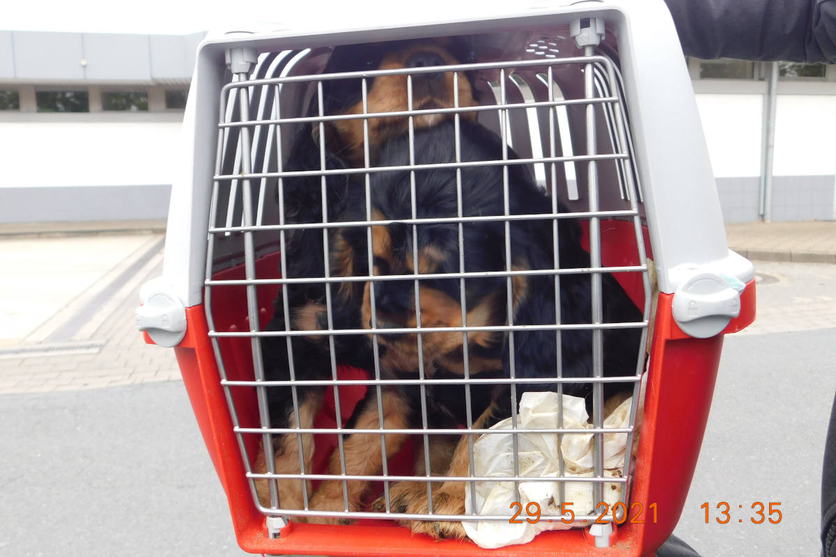 Der Zeugin nach übergab ein Mann gegen 12:50 Uhr einer anderen Person einen Welpen auf dem Rastplatz Lehrter See. Im Vorfeld vernahm sie Hundegebell-und jaulen aus zwei weißen Transportern. Die Autobahnpolizei kontrollierte die zwei weißen aus der Ukraine stammenden Transporter mit 19 Personen und entdeckte insgesamt acht Hundewelpen und eine kleine Katze auf den Ladeflächen. Auf den verdreckten Ladeflächen lagen die Tiertransportboxen ungesichert zwischen diversen anderen Gepäckstücken. Ein hinzugezogener Mitarbeiter vom Veterinäramt stellte Zweifel an der Echtheit der ausgestellten Impfpässe fest und dass die dreimonatige Einhaltung einer Tollwut-Quarantäne nicht durchgeführt wurde.