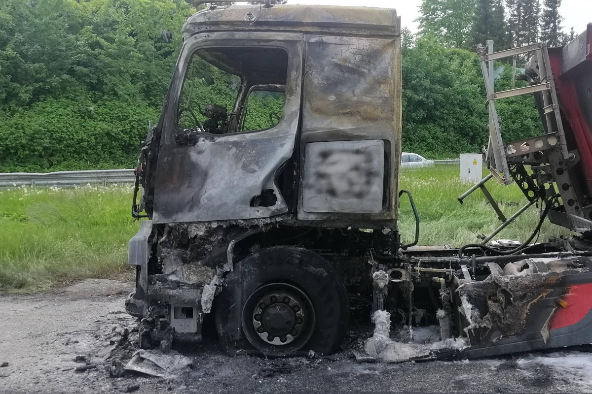 Um 13:30 Uhr wurden Beamte des Polizei- Autobahn- und Bezirksreviers Elmshorn auf die Autobahn gerufen und stellten auf dem Standstreifen einen abgestellten Kieslader fest, dessen Führerhaus bereits in Vollbrand stand. Kurz zuvor sollte ein geplatzter Reifen der Sattelzugmaschine Feuer gefangen haben.