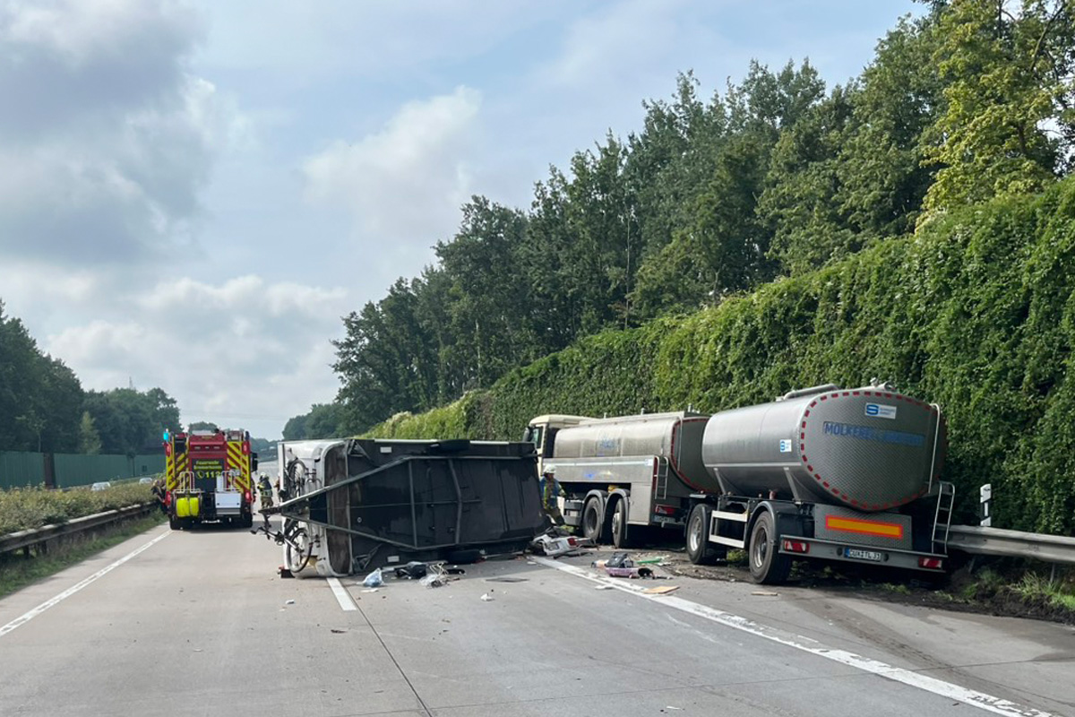 Am Sonntag, 20. Juli 2025, kam es auf der A27 bei Bremerhaven zu einem Unfall zwischen einem Pkw mit Wohnwagen und einem Lkw. Eine Person wurde leicht verletzt, es kam zu erheblichen Verkehrsbehinderungen.