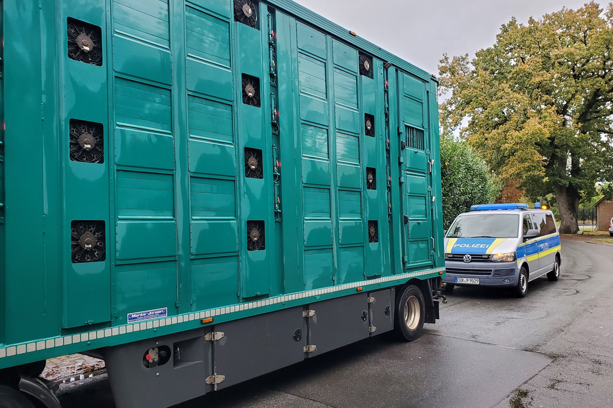 Am Dienstag, 28.10.2025, führten Polizei und Veterinäramt im Landkreis Cuxhaven (NI) gemeinsame Kontrollen von Tiertransporten durch. Auf der A27 und umliegenden Straßen wurden 23 Fahrzeuge überprüft, bei 15 gab es Beanstandungen – darunter zu enge Tierhaltung und mangelnde Reinigung.