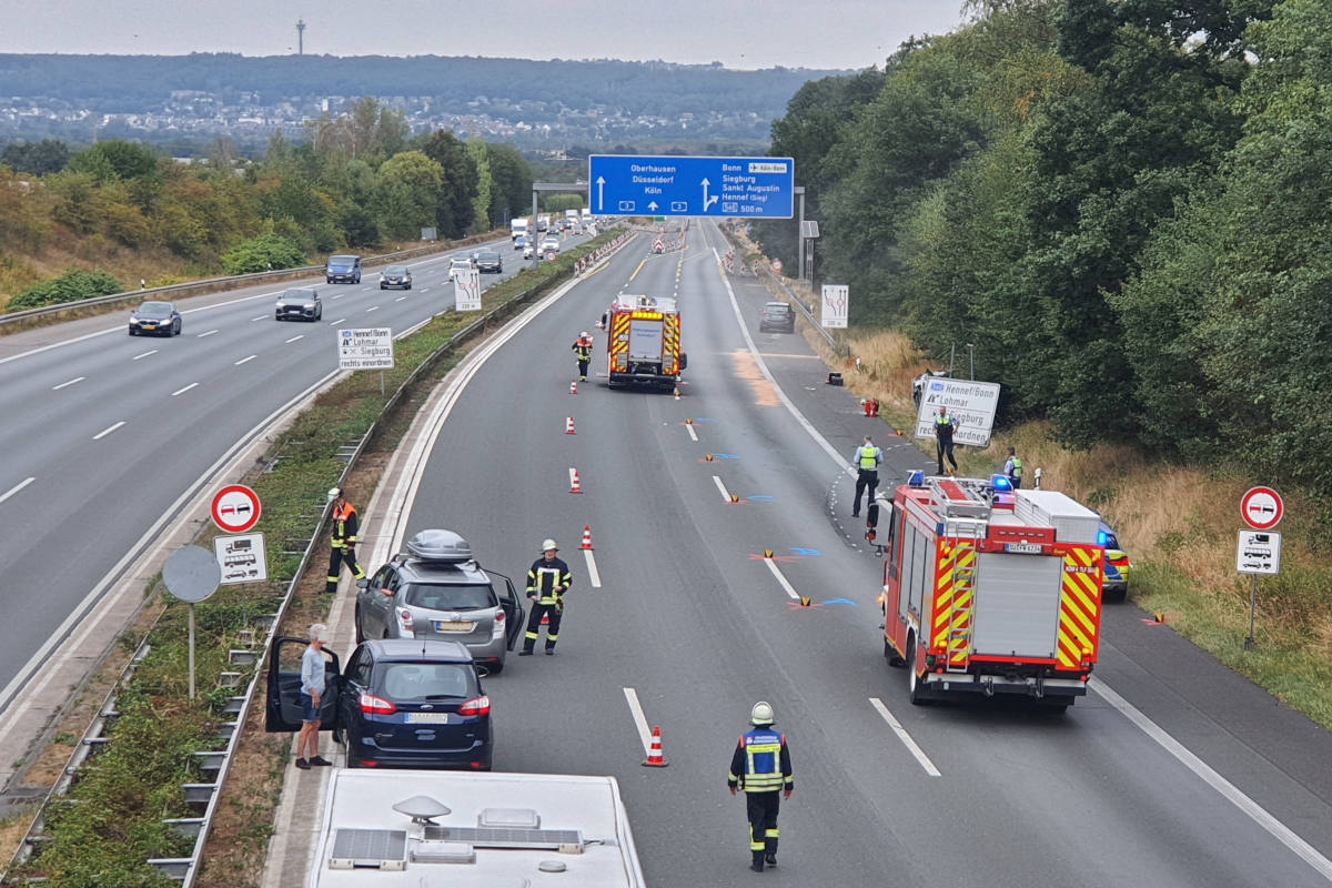 Noch während der laufenden Einsatzmaßnahmen benötigte eine im Satu stehende Person medizinische Hilfe. Ein Rettungssanitäter der Feuerwehr wurde zur Erstversorgung an diese Einsatzstelle gebracht. Das Kommandofahrzeug der Feuerwehr fuhr dafür entgegen der Fahrtrichtung durch die Rettungsgasse durch den stehenden Stau. Ein weiterer Rettungswagen kam aus Sankt Augustin. Aktuell ist die Unfallaufnahme durch die Polizei abgeschlossen. Der Verkehr fließt einspurig an der Unfallstelle vorbei. Der Abschleppdienst ist mit der Bergung beider Unfallfahrzeuge beschäftigt.