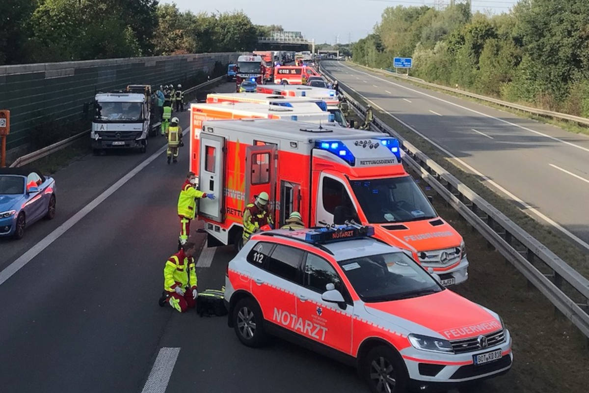 A31 Bottrop – Schwerer Verkehrsunfall mit 11 Verletzten auf der Autobahn – Rettungshubschrauber im Einsatz