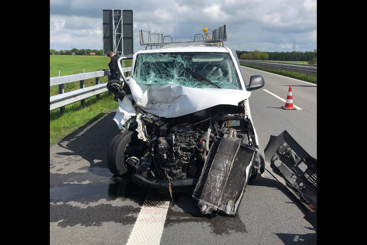 Am 18.05.2021 kam es um 10:18 Uhr auf der BAB 31, Fahrtrichtung Bottrop zu einem Verkehrsunfall, bei welchem der Fahrer eines Transporters gegen den Sattelauflieger eines vorausfahrenden Lkw prallte.