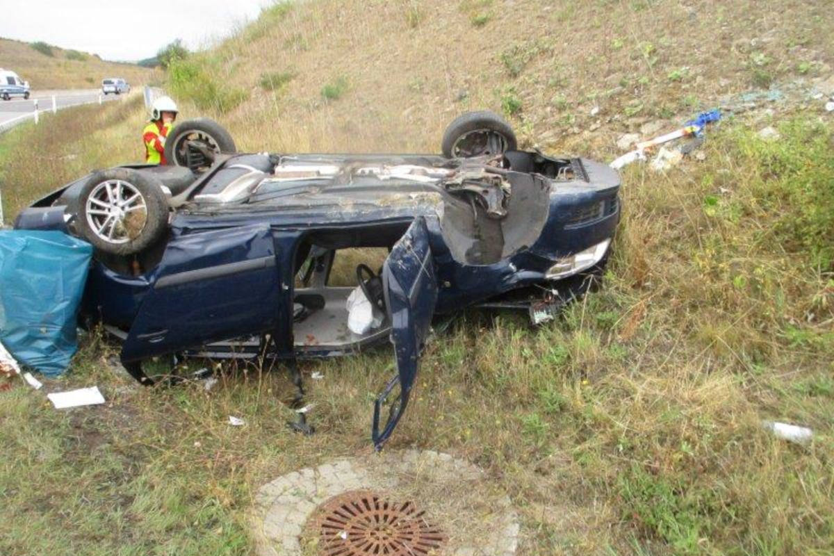 Pkw überschlägt sich mehrfach auf der A4 (Bildquelle: Thüringer Polizei)