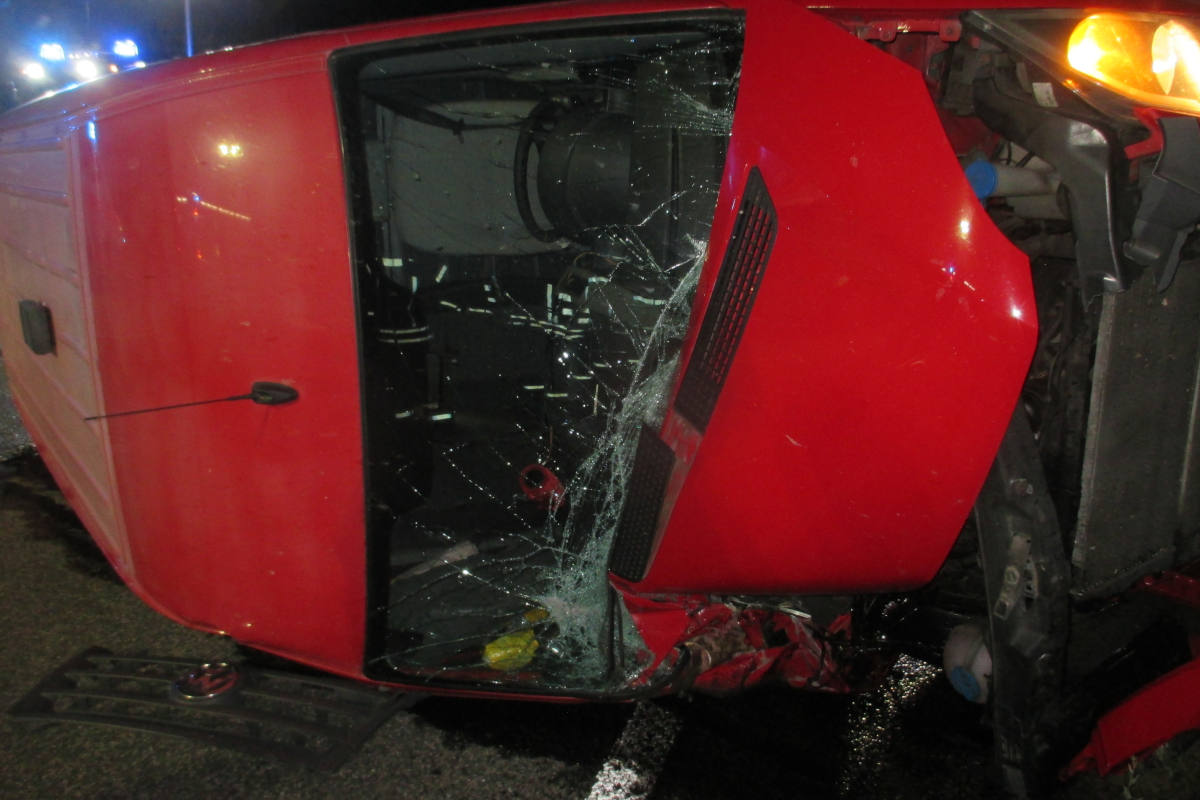 A4 Höhe Vollersroda – Transporter liegt quer, eine Person verletzt