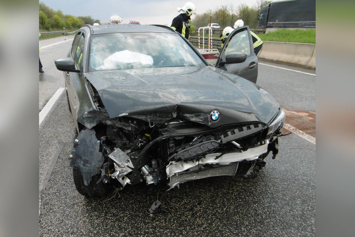Unfall mit verletzter Person und hohem Sachschaden auf der A4 bei Weimar (Bildquelle: Polizei Thüringen)