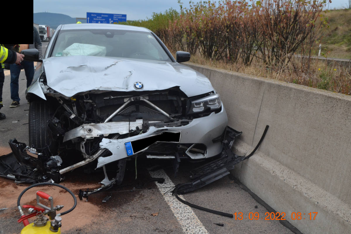 Unfall mit vier schwer verletzten Personen auf der A4 (Bildquelle: Thüringer Polizei)