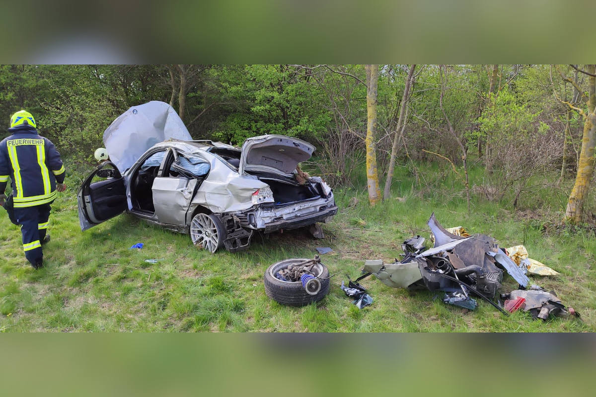 Ein 25-jähriger BMW Fahrer befuhr kurz vor der Anschlussstelle Waltershausen den mittleren von drei Fahrstreifen der A 4 Richtung Dresden, als am BMW der linke Hinterreifen platzte. Der Fahrzeugführer verlor daraufhin die Kontrolle über sein Fahrzeug, geriet ins Schleudern und kam nach rechts von der Fahrbahn ab. Dort kollidierte das Fahrzeug auf einer Länge von 50m mit der dortigen Schutzplanke und überschlug sich in der weiteren Folge im Straßengraben mehrfach.