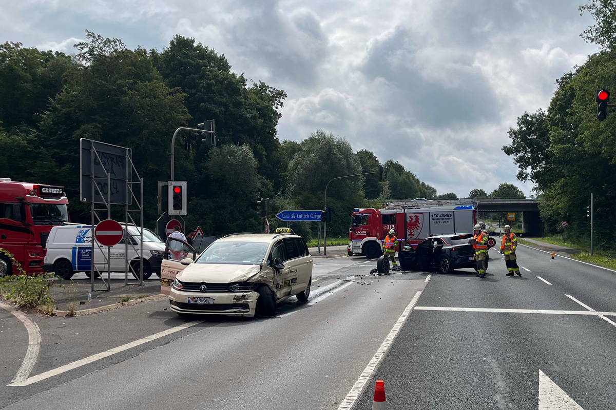 Am Montagvormittag, 4. August 2025, stießen an der Anschlussstelle Lichtenbusch ein Pkw und ein Taxi zusammen. Der 64-jährige Taxifahrer aus Raeren wurde schwer verletzt, der mutmaßliche Unfallverursacher aus Eschweiler leicht.