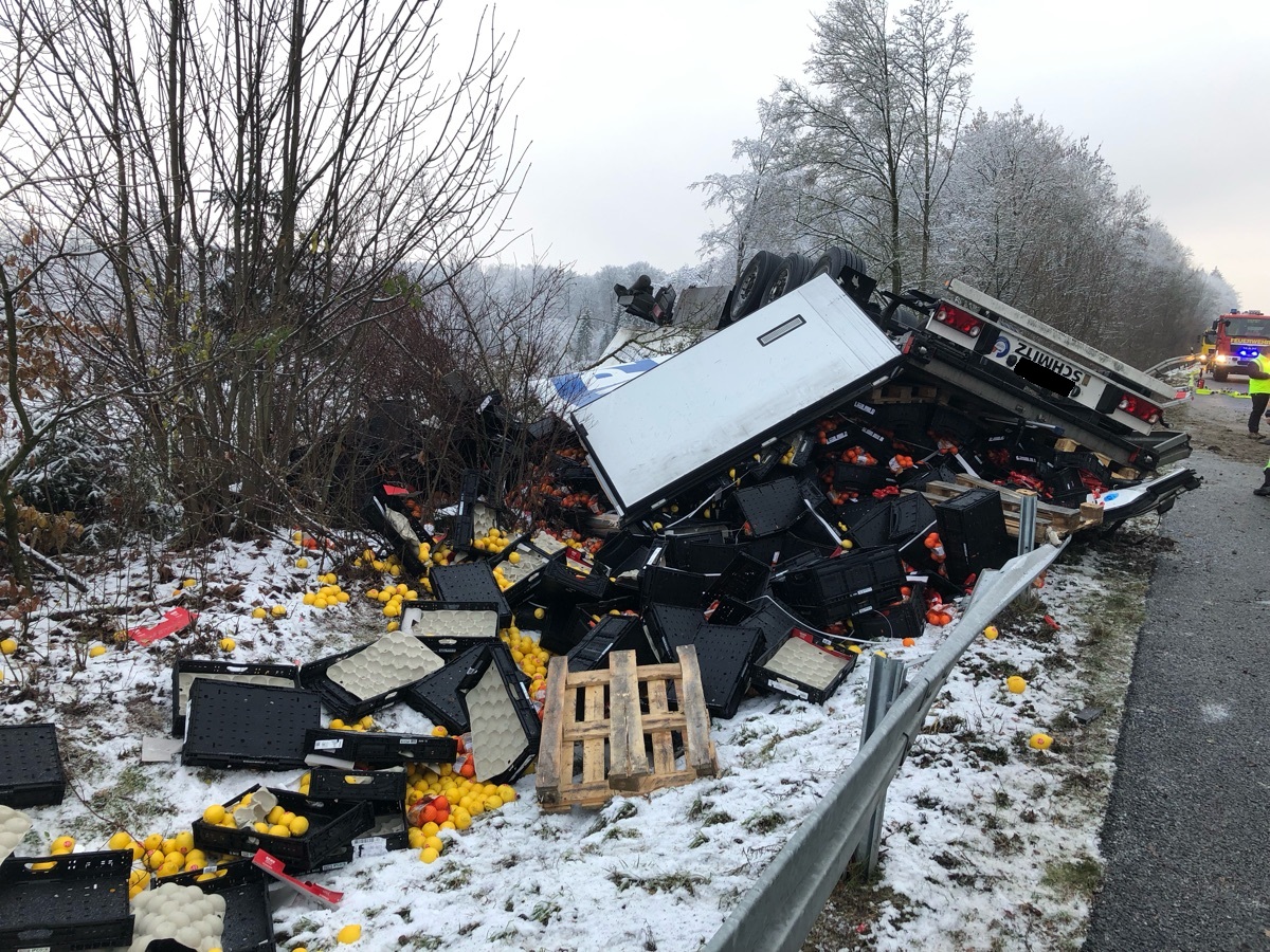 A44 Lichtenau – Lkw-Fahrer nach schwerem Glatteisunfall verletzt