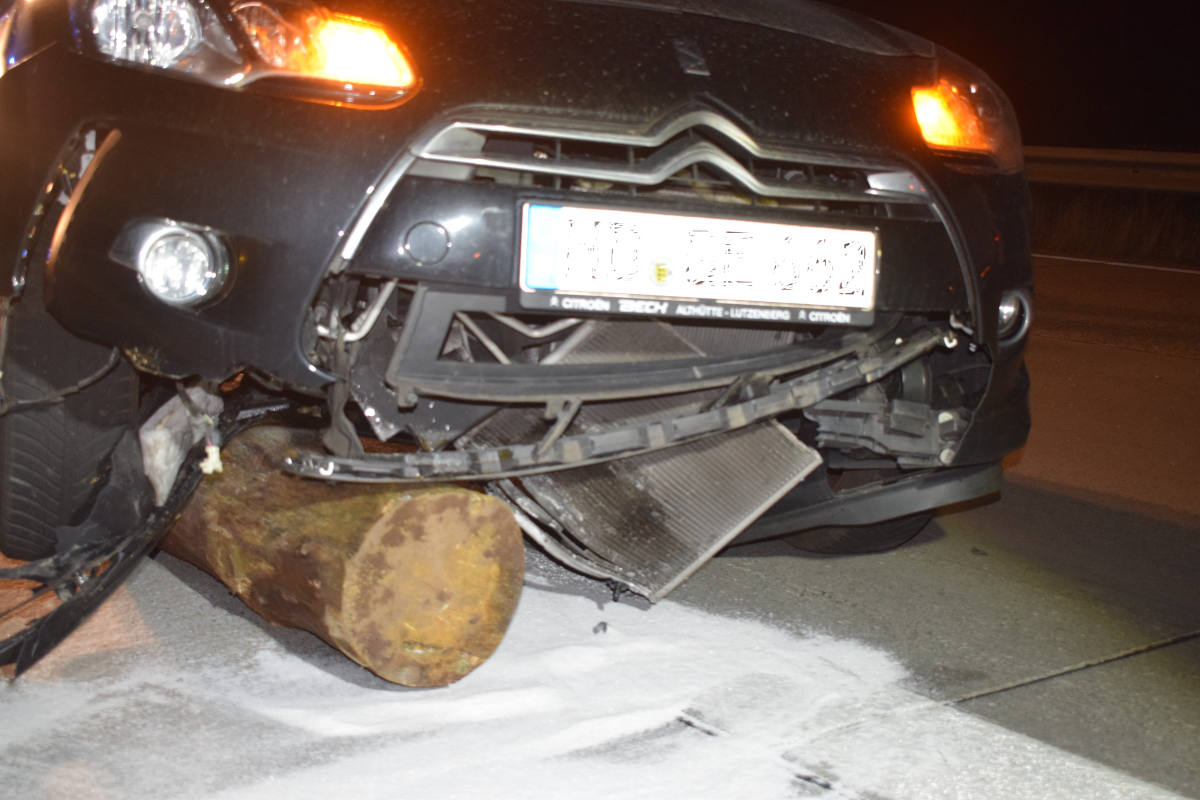 Ein 20-jähriger BMW-Fahrer und ein 51-jähriger Citroen-Fahrer erkannten die Hindernisse zu spät und überfuhren diese. Ein nachfolgender 35-jähriger Porschefahrer und ein 39-jähriger Mercedes-Fahrer konnten den Trümmerteilen nicht mehr ausweichen und überfuhren diese ebenfalls. An allen beteilgten Fahrzeugen entstand Sachschaden in Höhe von ca. 10.000 Euro. Ein PKW musste abgeschleppt werden. Verletzt wurde zum Glück niemand.