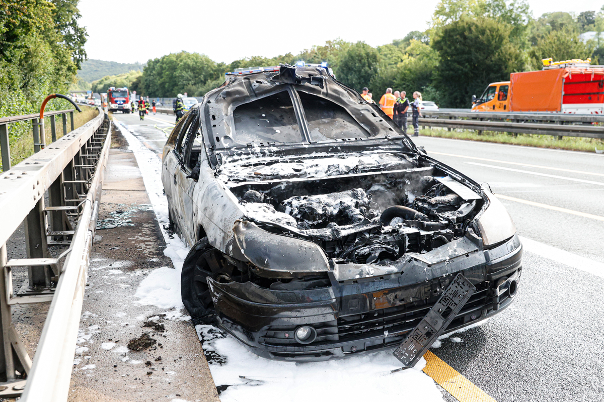 Am Freitagmorgen (05.09.2025) brannte auf der A46 bei Iserlohn ein Pkw vollständig aus. Auch die angrenzende Böschung geriet in Brand. Die Fahrerin blieb unverletzt, die Autobahn war rund 1,5 Stunden gesperrt.