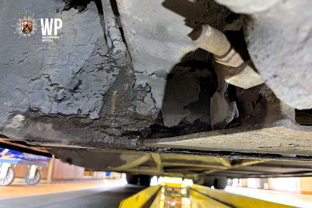 Hier kamen derart gravierende Mängel zum Vorschein - darunter ein durchgerosteter Hauptrahmen mit teilweisem Abriss, eine defekte Bremse, ein Reifen ohne Luftdruck, ein Notausstieg ohne Funktion, eine ausgeschlagene Lenkung, nicht funktionierende Schutzvorrichtungen, Schäden an der Beleuchtung sowie am Scheibenwischer und noch einiges mehr - dass die Weiterfahrt endgültig untersagt wurde.
