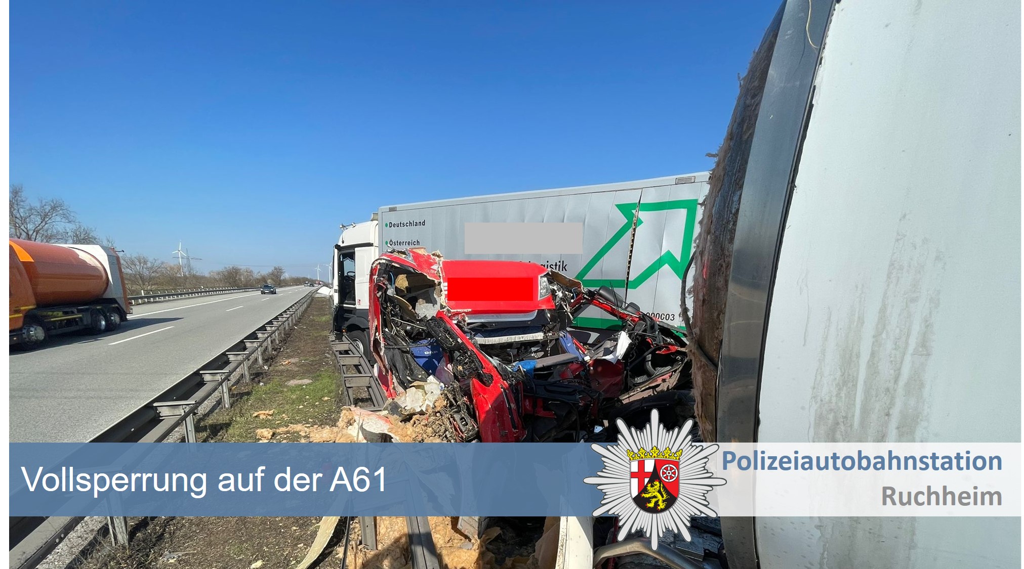 Vollsperrung nach schwerem Verkehrsunfall auf der A61 (Bildquelle: Polizeidirektion Neustadt/Weinstraße)
