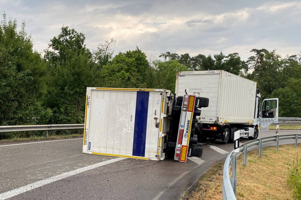 Am 23.07.22, gegen 08:00 Uhr, wurde die Polizeiautobahnstation Ruchheim darüber in Kenntnis gesetzt, dass am Autobahnkreuz Speyer ein LKW umgekippt sei.