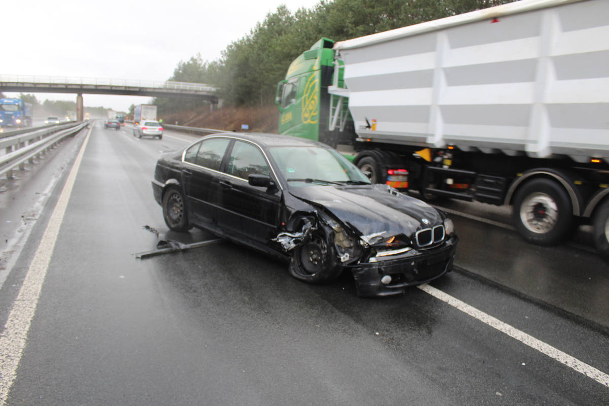Am gestrigen Donnerstag, gegen 15:20 Uhr, geriet der BMW eines 22-jähringen Fahrzeugführers aufgrund nicht angepasster Geschwindigkeit bei regennasser Fahrbahn auf dem linken Fahrstreifen kurz vor dem Autobahndreieck Kaiserslautern ins Schleudern.