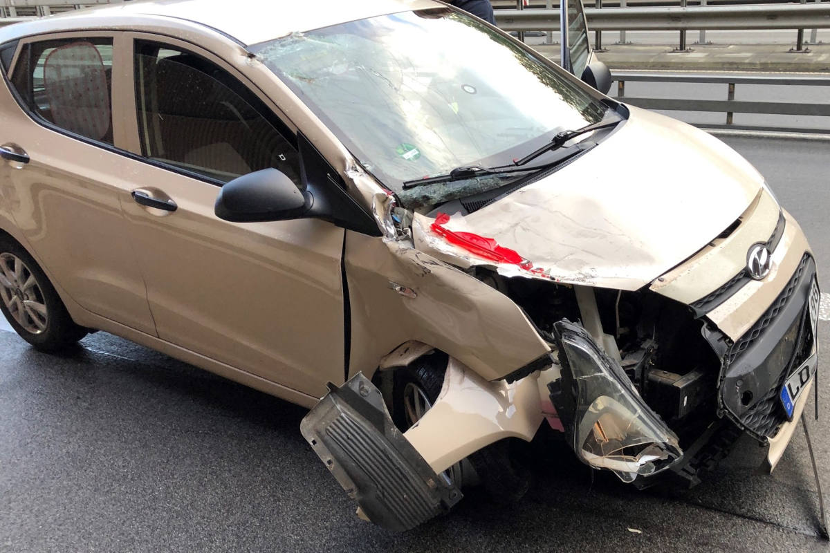 Beide Fahrzeuge verkeilten sich ineinander. Am PKW des 31-Jährigen entstand wirtschaftlicher Totalschaden. Seine ebenfalls im PKW befindliche 24-jährige schwangere Lebensgefährtin wurde bei dem Unfall, ebenso wie der Fahrer selbst, leicht verletzt. Während der Dauer der Verkehrsunfallaufnahme musste die BAB65 zeitweise voll gesperrt werden.