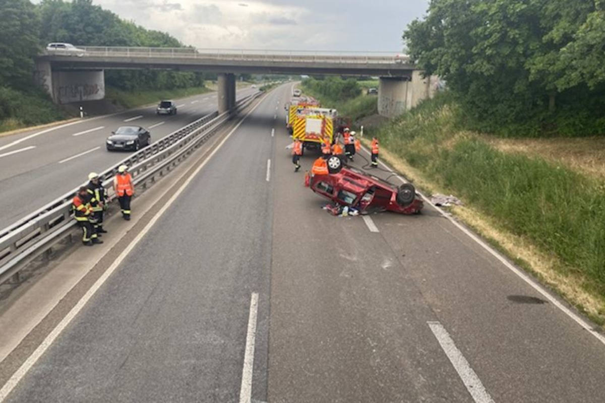 A65 Neustadt – Mit Fahrzeug auf der Autobahn überschlagen